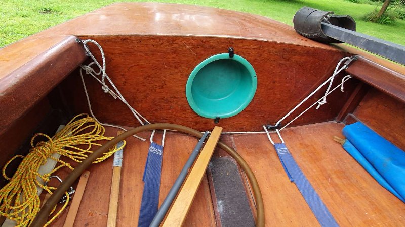 Il dispose d un mat en bois, d une dérive intégrée, bois, safran bois, voile, cordage.